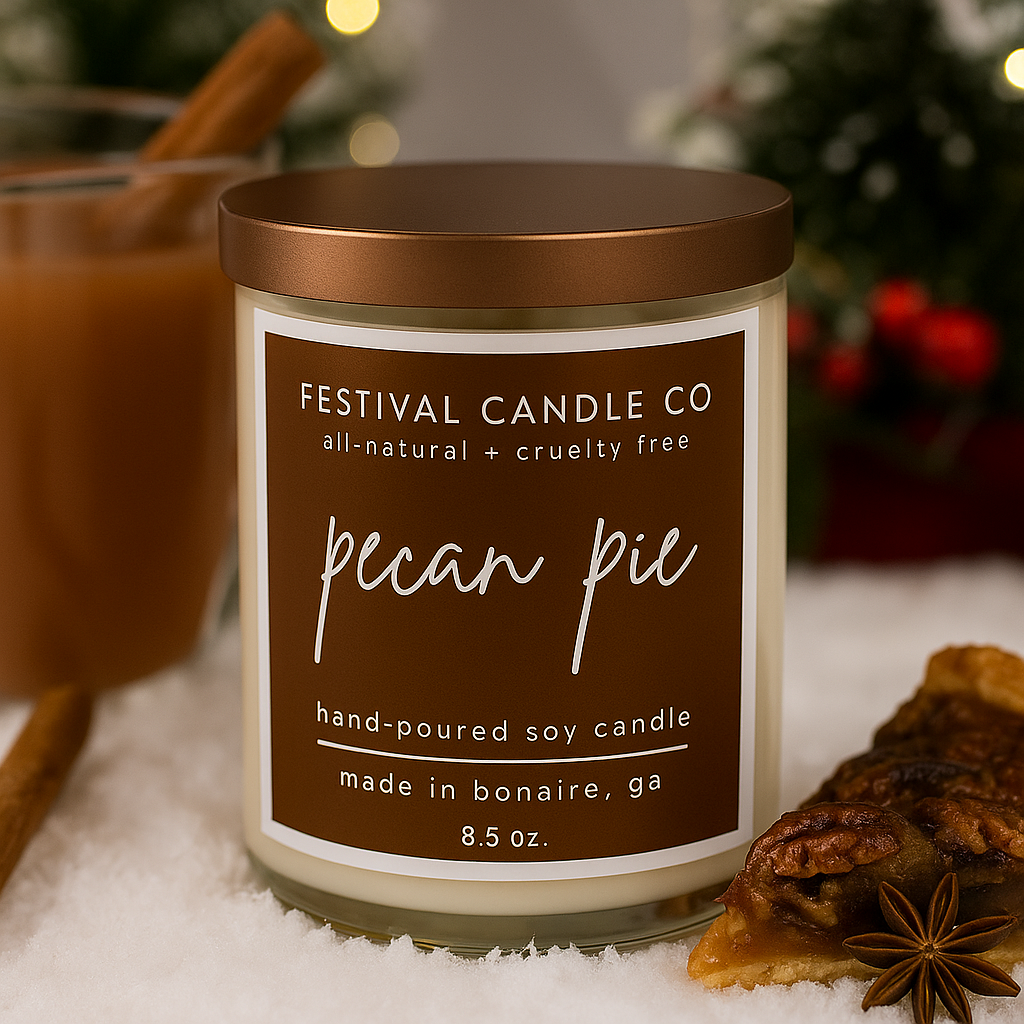 Warm pecan pie just out of the oven with a scoop of vanilla ice cream on top.